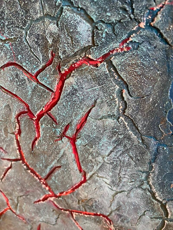 Mischtechnik mit Acryl und Hrakeliepaste auf Holzkörper